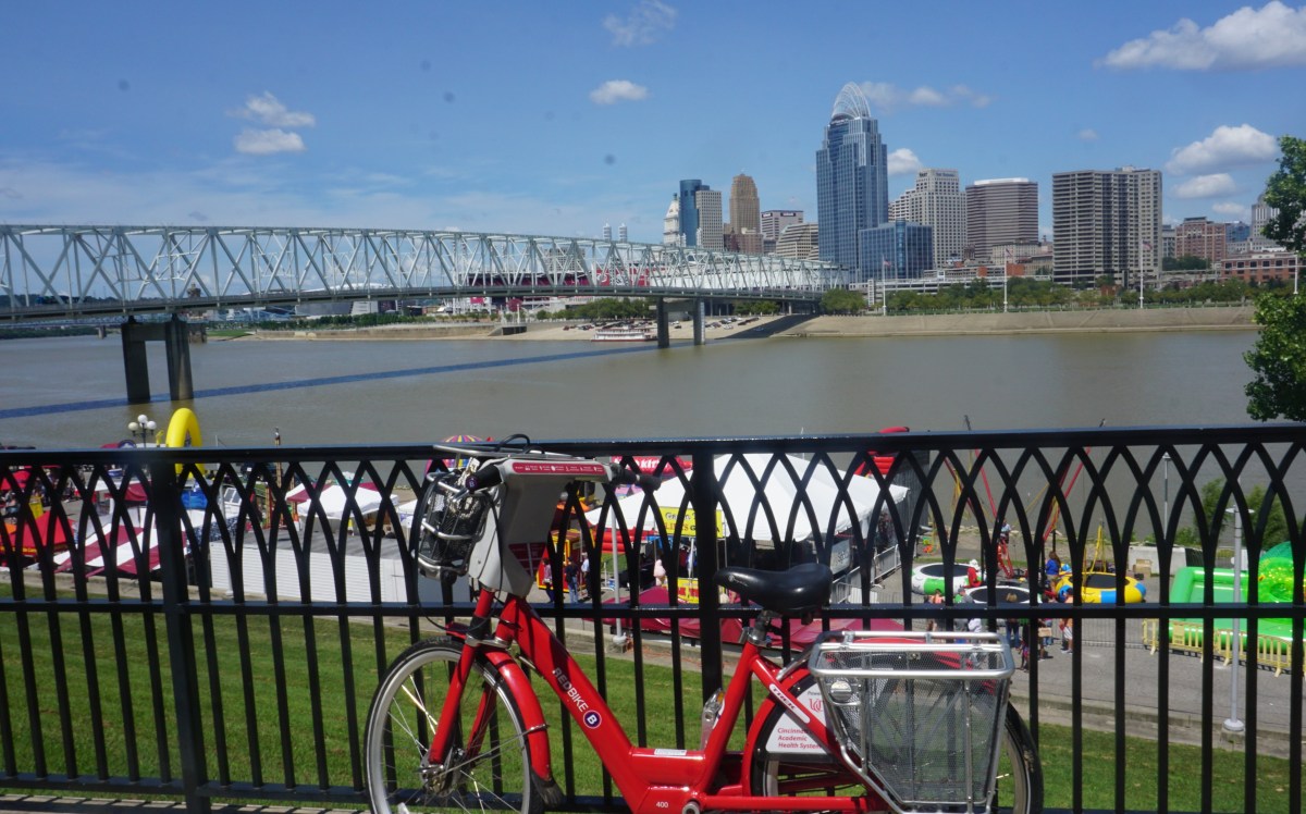 The city of Cincinnati has newly renovated the river-front bike trail.  However, we had to forfeit the plan to bike the whole length because we lost the whole morning.